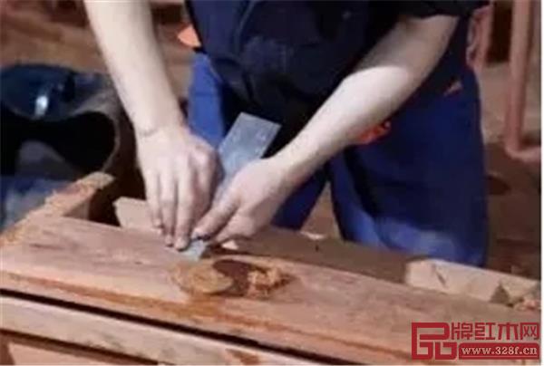紅木家具要通過刮磨來增添成色。色澤在紅木家具的鑒賞中,占據(jù)很重要的分量,因此各大商家在機(jī)械化的家具生產(chǎn)時(shí)代,刮磨依舊堅(jiān)持手工,更有保障。