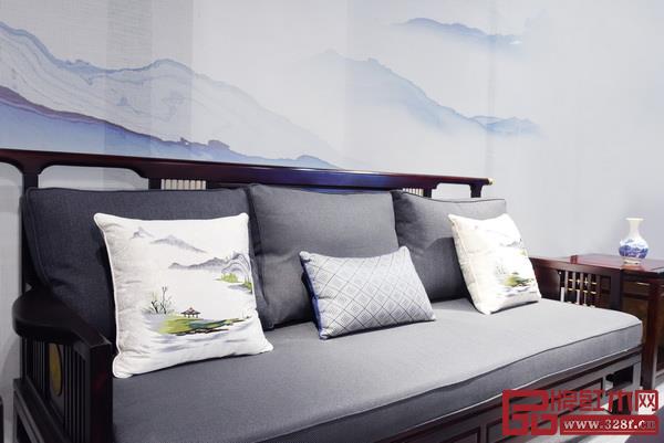 沙發(fā)軟墊與抱枕通過使用深淺對比的顏色,為整套家具增加亮點又不失活力