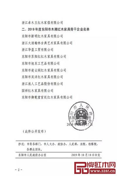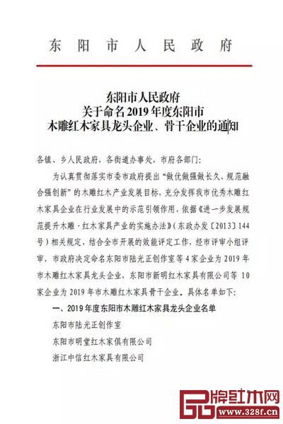 2019年度東陽市木雕紅木家具龍頭、骨干企業(yè)名單揭曉