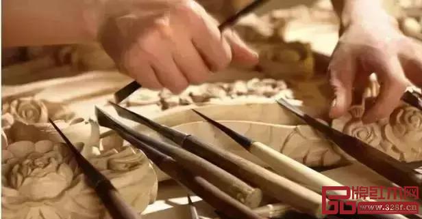 雕刻是紅木家具最常見的一種裝飾方法,要求匠師具有一定的腕力,刀具運(yùn)用自如,如果匠師技藝高超,雕刻就會(huì)取得很好的裝飾效果。這也考驗(yàn)匠師的手上功夫。