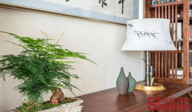 再養(yǎng)一盆文竹,擺兩只創(chuàng)意瓷瓶,一只竹紋臺燈,標(biāo)準(zhǔn)的文房清供樣式,意趣盎然,生機(jī)勃勃。