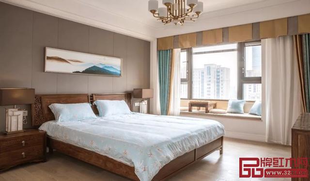 主臥在色彩搭配上,把背景色改成了偏暖的中灰色,如此一來室內(nèi)氛圍頓時偏向柔和沉穩(wěn),相比客廳,少了一份明快,多了一份溫柔和包容。