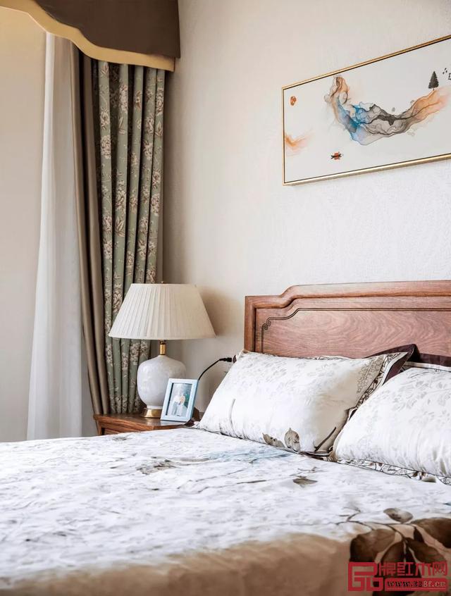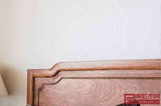 2.床頭背板上,大葉花梨的木紋,如一圈圈的水波,泛起層層漣漪;