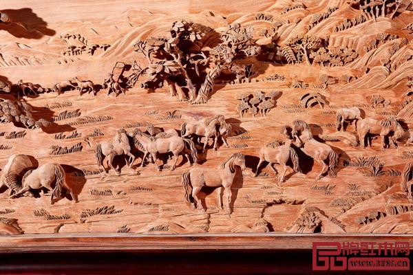 陳戴青大師木雕作品《百駿圖》掛屏百駿百態(tài)有觸手可及之感