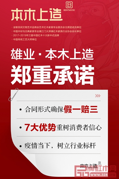 作為全聯(lián)藝術(shù)紅木家具專業(yè)委員會主席團單位、中國木材與古典家具專業(yè)鎮(zhèn)大澤紅木家具行業(yè)協(xié)會會長單位,雄業(yè)·本木上造除了“假一賠三”的一大亮點舉措外,還有6大優(yōu)勢,為消費者、經(jīng)銷商全力保駕護航。