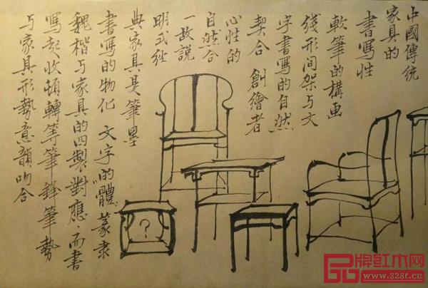 這個“寫”肯定不是我們?nèi)粘5膶懽中螒B(tài)的寫,聯(lián)系到中國書畫理論,“寫”是一種境界,是寫心,是心與時境石紙上映跡,心為字畫,而非描繪。以現(xiàn)代人看,一般的畫畫由草(稿)入微,由淡漸深,描繪成畫,而寫,一筆下去,起頓收合,以及下筆的蓄勢與收勢,以及往下一筆的隱勢已全具備,再無需往復修描。我們的書法與文人寫意畫講究的是筆筆有交待,也就是心跡不渾。骨法清晰可照,中國造器的漆器瓷器是如此、上好的文人紫砂壺也是如此,都講究線條的“筆筆清晰有交待”,那么,我們中國傳統(tǒng)家具如何呢?