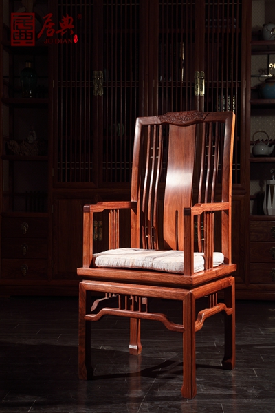 居典紅木《悅幾書椅》靠背及扶手等地方均按照人體工程學(xué)設(shè)計(jì)。微微后靠,肩部、腰部與椅背所特有的曲線緊密而自然地貼合在一起,雙手自然地落在兩邊的扶手上,看似無意之處,一上座卻均合你心意。