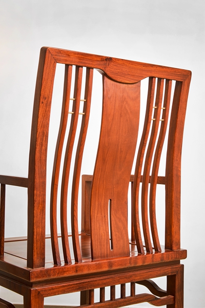 從尺寸來看,當(dāng)椅子的座高高于或低于400mm,活動(dòng)度隨之降低,舒適感為之增強(qiáng)?!稅値讜巍纷叽蠹s520mm,不易使腰部感到疲勞,再加上紅木家具特殊屬性,還能端正坐姿,做到“坐如鐘”,展現(xiàn)人的精神風(fēng)貌和內(nèi)在氣質(zhì)。
