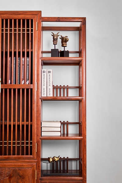 生活需要儀式感。居典紅木《悅幾書柜》柜門均采用門栓式的設(shè)計(jì),每次打開書柜都猶如從里取出寶物般,充滿儀式感!