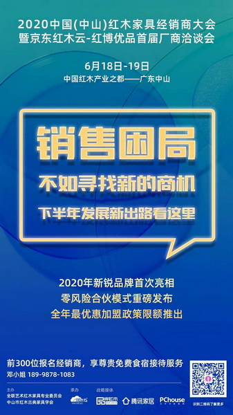 6月18日,2020全國(guó)首場(chǎng)紅木經(jīng)銷商大會(huì)將在廣東中山舉行,前300位報(bào)名經(jīng)銷商,享尊貴免費(fèi)食宿接待服務(wù)。