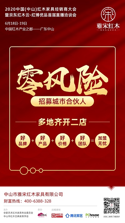 6月18日,雅宋紅木將會(huì)攜“新產(chǎn)品、全渠道”的品牌方案,重磅亮相2020中國(guó)(中山)紅木家具經(jīng)銷商大會(huì)暨京東紅木云-紅博優(yōu)品首屆直播洽談會(huì),解鎖營(yíng)銷新趨勢(shì)、新機(jī)會(huì),招募加盟合伙人,把握住“危機(jī)帶來(lái)的機(jī)會(huì)”,一起逆勢(shì)而上,共贏紅木事業(yè)。