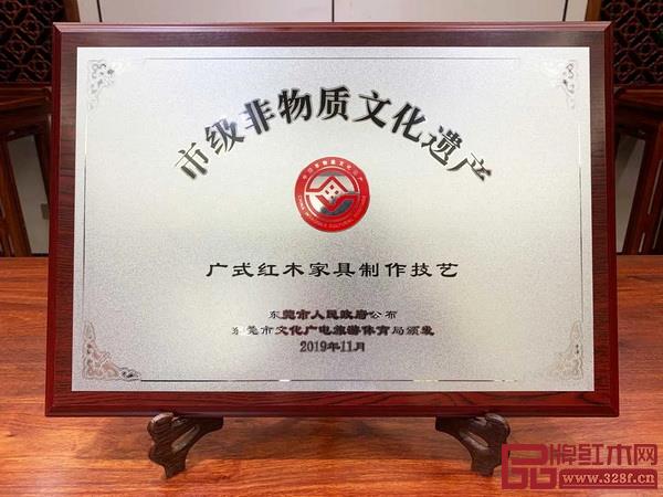會上,為最新入選的中國非物質(zhì)文化遺產(chǎn)項目舉行了授牌儀式,東莞市鴻普軒家具有限公司(國壽紅木)——“廣式紅木家具制作技藝”正式列入非物質(zhì)文化遺產(chǎn)名錄,總經(jīng)理陳衛(wèi)棠上臺進行授牌儀式。