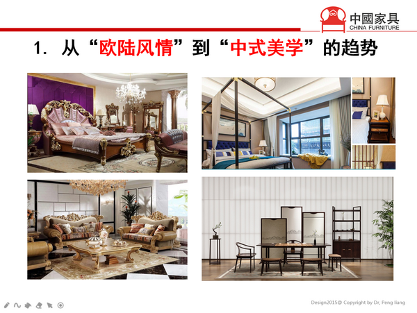 一是從“歐陸風(fēng)情”到“中式美學(xué)”的趨勢。曾經(jīng)的洛可可、巴洛克風(fēng)格是中國中產(chǎn)消費(fèi)階級(jí)的首選,今天新生代的年青消費(fèi)群體對這種繁復(fù)、浮夸的造型已經(jīng)“不感冒”了,而是回到喜歡飄逸、空靈,更有文化內(nèi)涵的中式家具當(dāng)中。