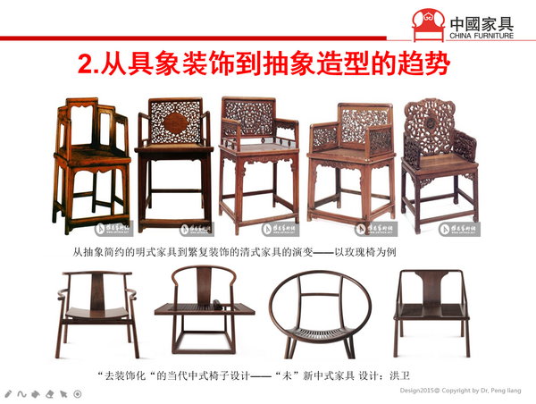 二是從具象裝飾到抽象造型的趨勢。從迷信、崇拜雕刻裝飾的清代風(fēng)格,回歸到喜歡明代的簡素簡約。無論是建筑、家具,還是服裝等等,都是往這個(gè)大趨勢前進(jìn)。