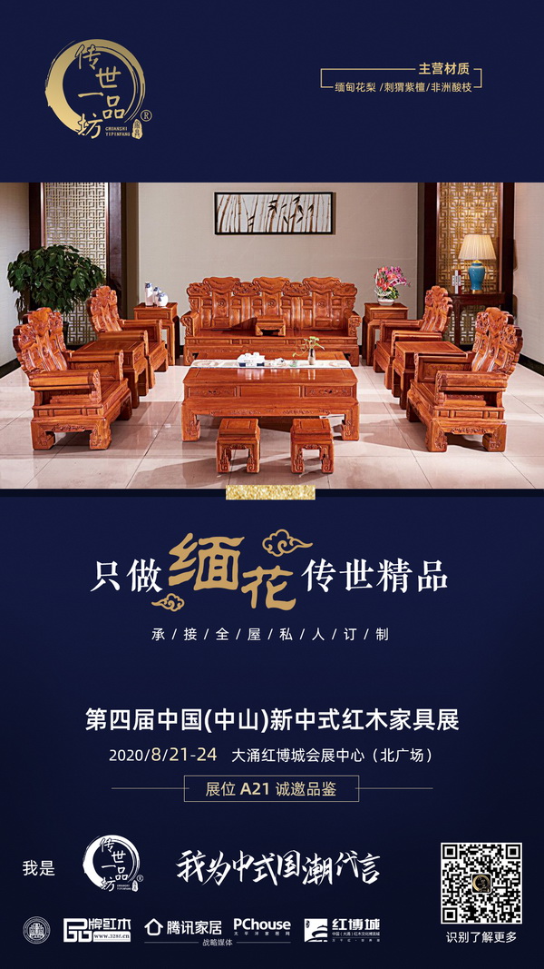 8月21日-24日,主題為“國(guó)潮中式優(yōu)選生活”的第四屆中國(guó)(中山)新中式紅木家具展,將在廣東省中山市大涌鎮(zhèn)中國(guó)(大涌)紅木文化博覽城會(huì)展中心舉行。