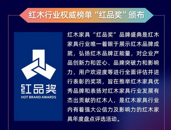 近日,第十一屆中國紅木家具品牌峰會(以下簡稱紅木品牌峰會)宣布確定于今年12月舉行。作為紅木人的年終秀,紅木品牌峰會是舉辦時間最長、參與品牌最多、大咖嘉賓最多、影響力最大的紅木家具行業(yè)峰會。今年重頭戲包括:第十一屆中國紅木家具品牌論壇、2020紅木家具“紅品獎”品牌盛典、全聯(lián)民間文物藝術(shù)品商會藝術(shù)紅木家具專業(yè)委員會年會。本屆紅木品牌峰會由全國工商聯(lián)直屬商會全聯(lián)民間文物藝術(shù)品商會,及其下屬專業(yè)委員會一全聯(lián)民間文物藝術(shù)品商會藝術(shù)紅木家具專業(yè)委員會主辦,騰訊家居、品牌紅木作為官方媒體大力支持。“紅品獎”以打造“紅木品牌消費指南”為目標(biāo),10年來積累了強大的公信力和影響力。紅木家具“紅品獎”品牌盛典往屆由事件類、人物類、品牌類組成,2016年起增設(shè)“紅木家具十大新中式品牌”,讓我們了解一下“2019紅木家具十大新中式品牌”。