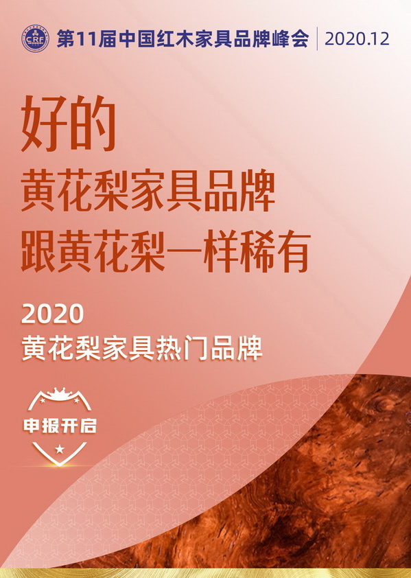 目前,“2020黃花梨家具熱門品牌”公開申報已經(jīng)開始,結(jié)果將在第11屆中國紅木家具品牌峰會上揭曉。2020年12月,一起關(guān)注結(jié)果花落誰家。
