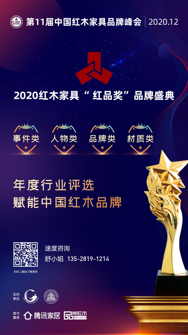在紅木家居定制發(fā)展的下半場,誰能在市場角逐中成為熱門品牌?這個(gè)答案將在12月舉行的第11屆中國紅木家具品牌峰會(huì)之2020紅木家具“紅品獎(jiǎng)”品牌盛典揭曉。