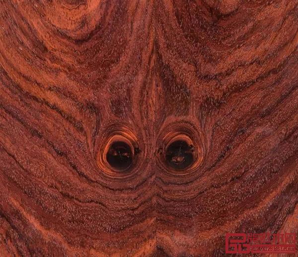 鬼臉紋有多種成因,最常見的就是黃花梨樹上的一個(gè)樹杈反映到主干上時(shí),會(huì)形成一個(gè)節(jié)痕,這個(gè)節(jié)痕就叫鬼臉,讓人一眼就能看出一張臉的紋理叫作鬼臉紋。