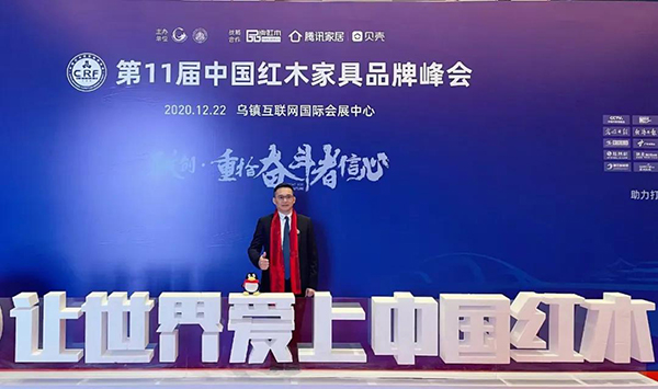 閑適紅木董事總經(jīng)理石擁軍出席第11屆中國紅木家具品牌峰會