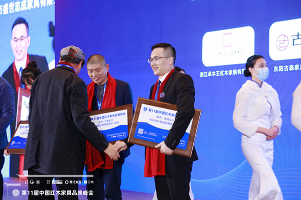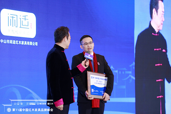 閑適紅木榮獲第11屆中國紅木家具品牌峰會“2020闊葉黃檀家具熱門品牌”獲獎現(xiàn)場