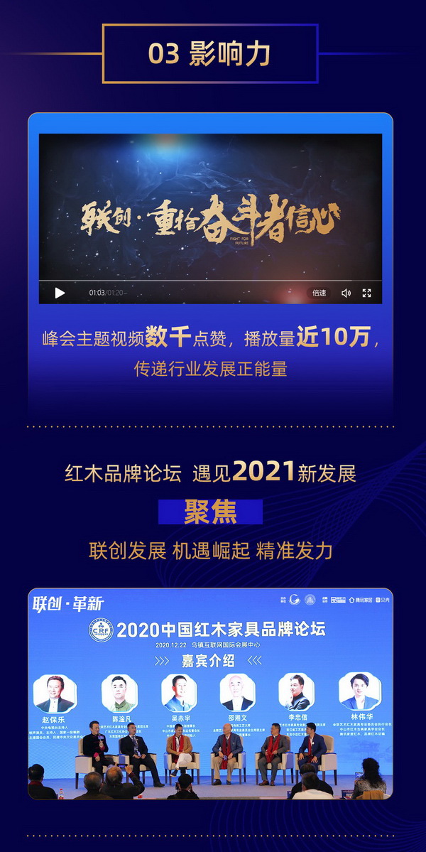 本屆峰會以“聯(lián)創(chuàng)·重拾奮斗者信心”為主題,連袂高規(guī)格的紅木品牌論壇,舉辦盛大的紅木品牌盛典,還有紅木人的年終秀,開啟了紅木奮斗新篇章。