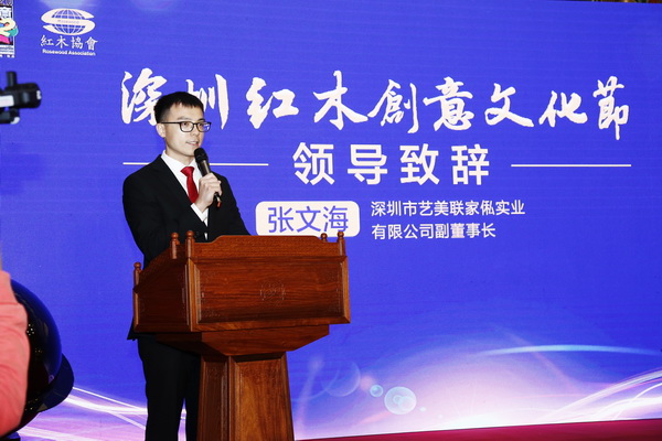 美聯(lián)家私副董事長張文海在2020深圳紅木創(chuàng)意文化節(jié)嘉年華上致辭