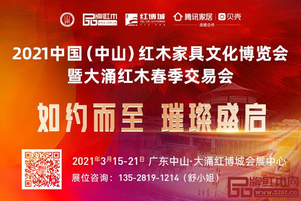 近日,2021中國(中山)紅木家具文化博覽會暨大涌紅木春季交易會正式官宣,將于3月15日-21日廣東中山·大涌紅博城會展中心舉行。