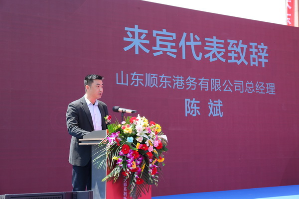 山東順東港務(wù)有限公司總經(jīng)理陳斌現(xiàn)場(chǎng)致辭