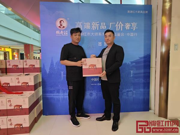 國壽紅木副董事長陳淦凡向首席體驗官贈送伴手禮
