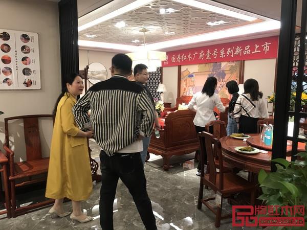 整場活動布置,別出心裁地將紅木家具展廳與中式文化沙龍結(jié)合,目之所及,無不彰顯高端優(yōu)雅的空間格調(diào)。諸位體驗官在格調(diào)非凡的展廳內(nèi)穿梭,風(fēng)云闊談,盡享雅趣。