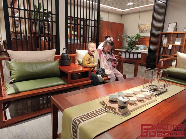 此次活動,很多合肥消費者帶著小朋友前來,以紅木家具為媒介,親子共同品鑒非遺之美。