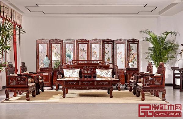 巧奪天工紅木:錦繡山河沙發(fā)