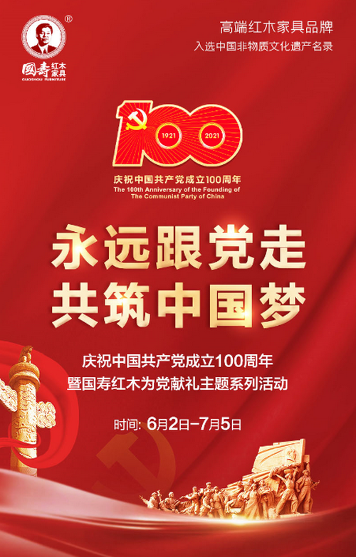 6月2日-7月5日,慶祝中國共產(chǎn)黨成立100周年暨國壽紅木為黨獻(xiàn)禮主題系列活動將啟動,全國聯(lián)動,敬請期待。