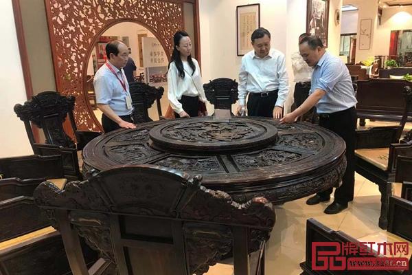 [摘要]中國(guó)家具協(xié)會(huì)理事長(zhǎng)徐祥楠與中國(guó)家具協(xié)會(huì)副理事長(zhǎng)兼秘書長(zhǎng)屠祺一行親臨雅典紅木大師街展廳,進(jìn)行參觀指導(dǎo)