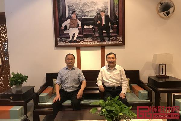 雅典紅木董事長(zhǎng)包海深(左)與世界家具聯(lián)合會(huì)主席、中國(guó)輕工業(yè)聯(lián)合會(huì)黨委副書記、中國(guó)家具協(xié)會(huì)理事長(zhǎng)徐祥楠(右)合影留念