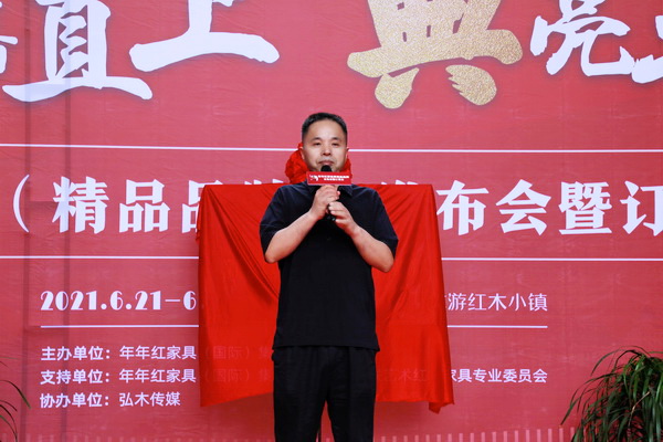 致詞時,金章洪先生分享了未來紅木家具行業(yè)發(fā)展趨勢,對新富典精品品牌定位、特色優(yōu)勢,以及富典事業(yè)部未來戰(zhàn)略規(guī)劃進行了介紹。
