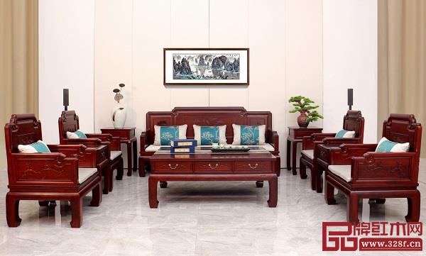 巧奪天工紅木新品805四季常青沙發(fā)將中國茶花畫雕刻進(jìn)紅木家具中,整幅畫面清寂嫻雅,意境悠遠(yuǎn),一幅精煉的國畫小品,躍然于木上。