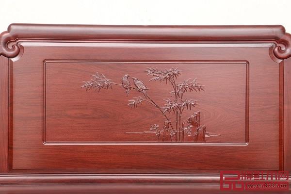 中國人的閑雅,往往與自然相契。幽幽花木,文人所鐘,如松、竹、梅者,是文人精神的寄寓。巧奪天工紅木將“歲寒三友”融入紅木家具設(shè)計之中,喬松婆娑,寒梅競放,翠竹搖曳,以清雅之草木,刻入畫圖中。