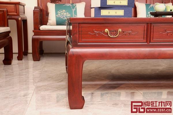 此沙發(fā)取名四季常青,取生機(jī)勃勃、四季發(fā)財之意。扶手和搭腦處均呈階梯狀,寓意步步高升,拐角處均委角處理,圓潤飽滿。末端向內(nèi)翻轉(zhuǎn)呈勾云紋造型,寓意富貴如意。后背略傾斜,自然后仰,配上舒適的腰枕,使落座者全身得到放松。扶手、搭腦、鼓腿彭牙,全部為整料挖取,不飾繁縟雕刻,更突顯料的厚重、工藝的精湛。