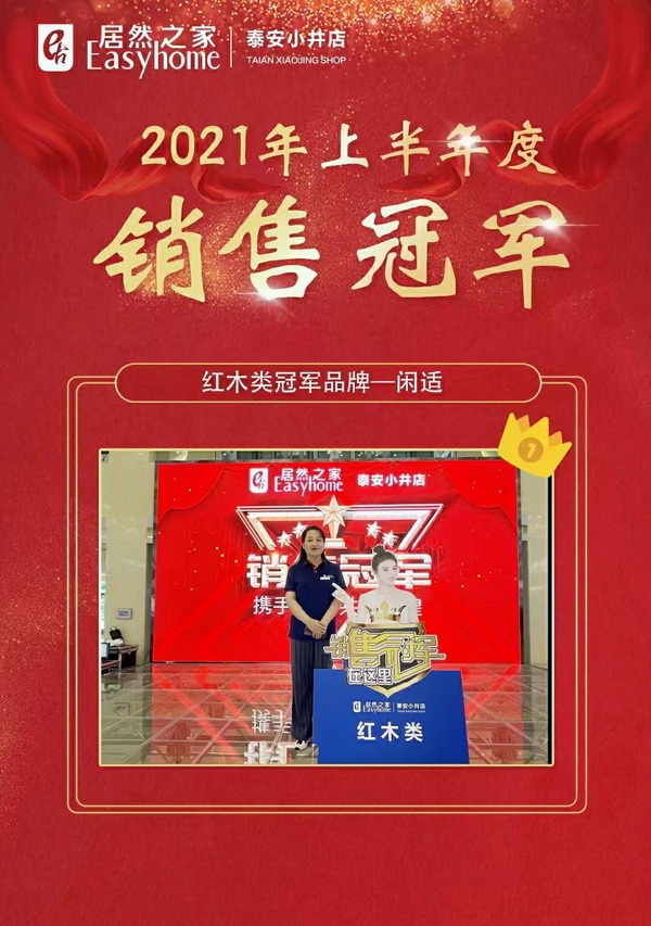 7月,閑適紅木居然之家泰安小井店斬獲2021上半年度紅木類銷售冠軍!