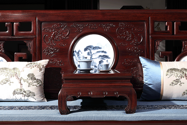 ↑喜迎紅紅木——青花瓷沙發(fā)