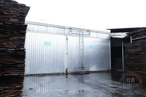 第二步,蒸后,在一次性容納100噸木材的大型烘房烘干至木材含水率符合國家硬木家具通用技術條件標準的8%;