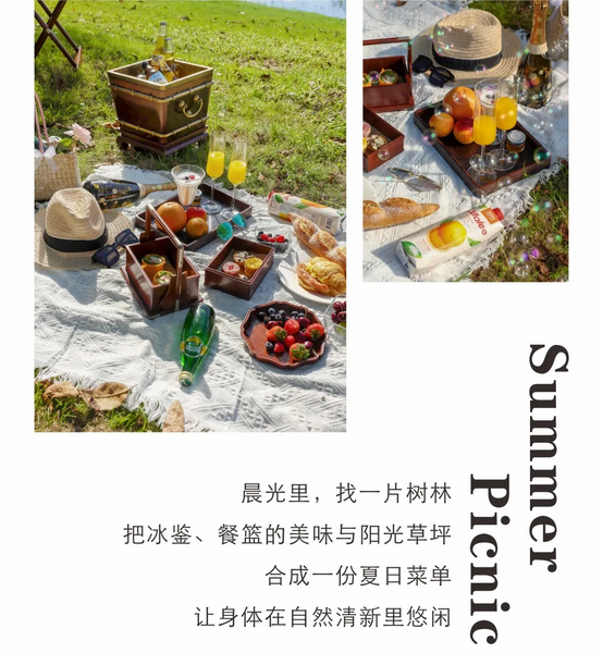 特別是出現(xiàn)在野餐墊旁、室內(nèi)客廳、露天燒烤花園的一款冰鑒(古時(shí)候的冰桶),還有品牌的各種家具、物品低調(diào)出鏡,讓人看到傳統(tǒng)家具與現(xiàn)代生活的無縫契合,區(qū)氏倡導(dǎo)的夏日態(tài)度,古今、中西融合的家居觀也鮮活呈現(xiàn)。