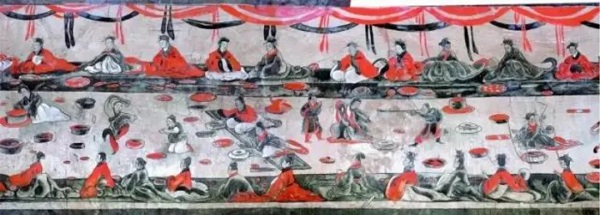 “筵”“席”其實(shí)可以看做一回事,可“席”在如今的漢語(yǔ)里用得更為頻繁,像“出席”“坐席”等等,而“筵席”現(xiàn)在已演變?yōu)橐环N宴飲儀式。