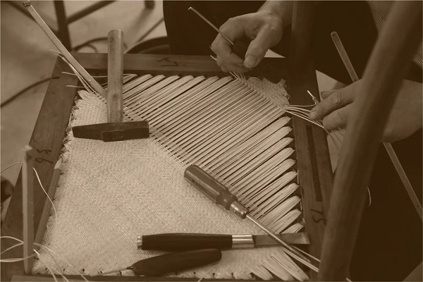 軟屜一般分為兩層,席面(藤面)下層還有棕面(棕屜),主要靠棕繩承重,因此除了編藤技術(shù)的優(yōu)劣,棕繩好壞也直接關(guān)系軟屜的使用壽命。
