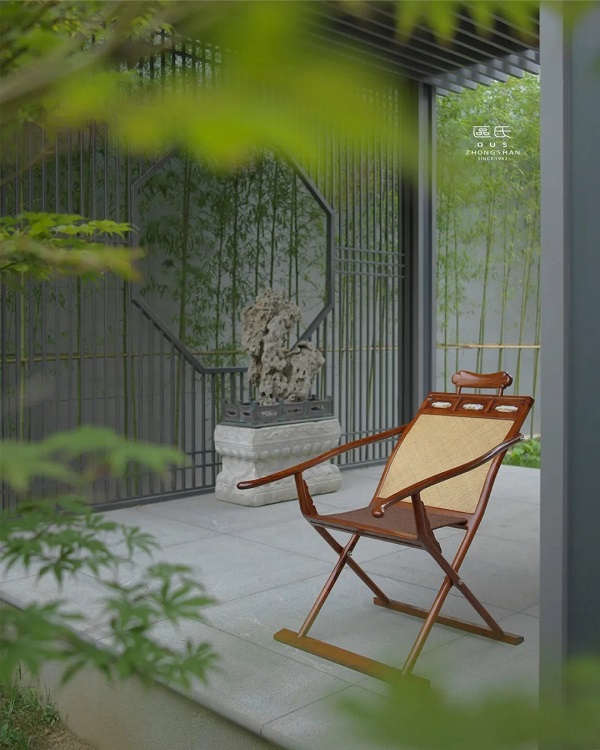 擇一躺椅、涼榻在寬敞庭院小憩養(yǎng)神