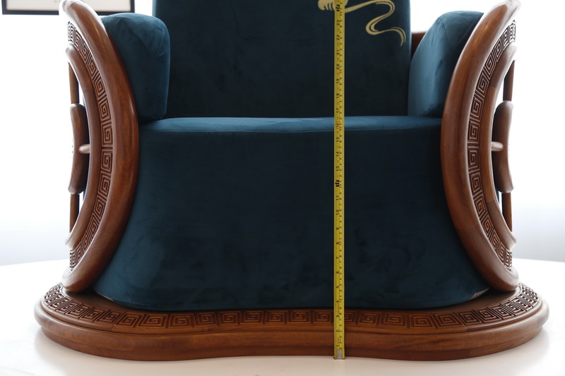 這件《風(fēng)云椅》座墊十分厚實(shí),足足有41厘米高。一般椅子座面在這個高度左右,膝蓋彎曲后的坐感會比較舒適。它的靠背和軟墊也是厚軟包,怎么盤腿坐或躺靠都不會被木頭擱到。