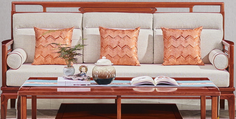 《和悅沙發(fā)》材質(zhì)是闊葉黃檀,俗稱印尼黑酸枝,花紋優(yōu)美的黑酸枝,通過打磨表面細(xì)膩。這是一款皮質(zhì)軟包的沙發(fā),與紅木搭配起來,更加時尚。絨面橙色軟包,摸起來很軟很舒服。