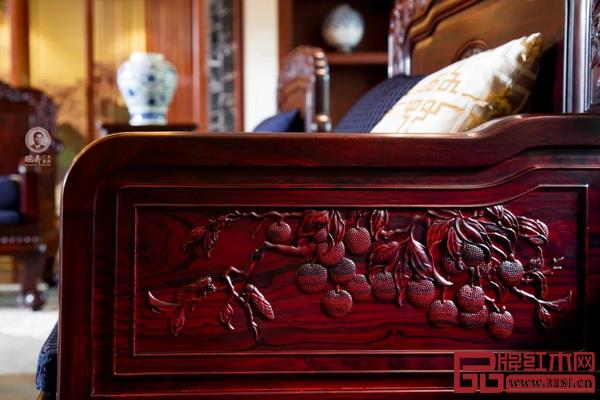 國壽紅木廣府壹號沙發(fā)運用國壽廣式非遺技藝,從中國國畫大師齊白石筆下的《荔枝鳴蟬》吸取靈感。荔枝寓意一本萬利,吉祥長壽;蟬鳴于枝上,取蟬鳴高聲之意,高聲大利,名利雙收,更顯卓爾不凡。大量的雕刻細(xì)節(jié)為其增加了精致感,神形具備,隨性自然。